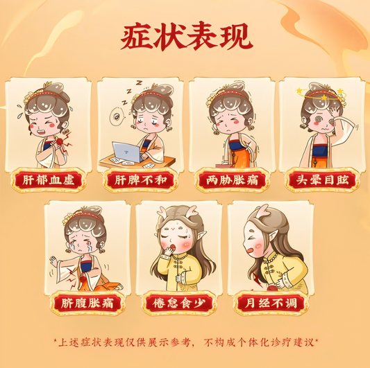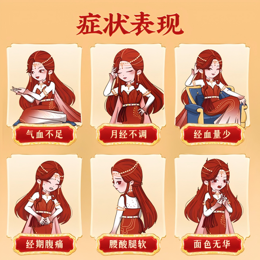 经期紊乱,腹痛,量少,血块,白带,烦躁易怒等等