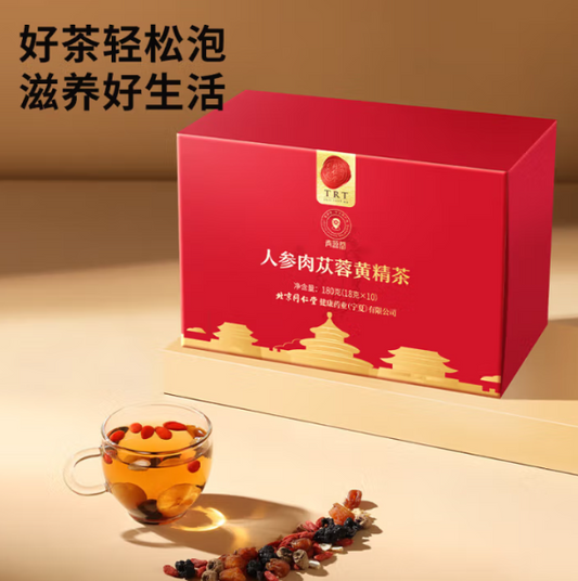 北京同仁堂 人参肉苁蓉黄精茶180克(18克*10袋)男性滋补送礼养生茶 壮阳