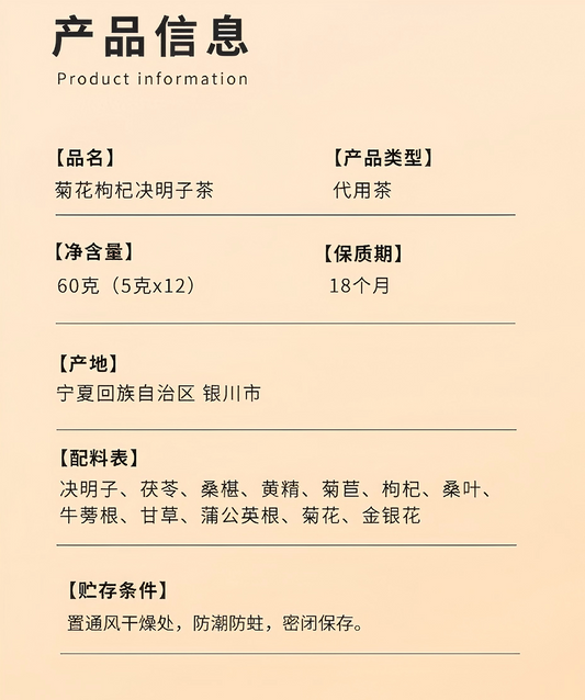 菊花枸杞决明子茶60g 科学配比独立袋装养生茶 【5克*12袋】清肝明目 清热去火